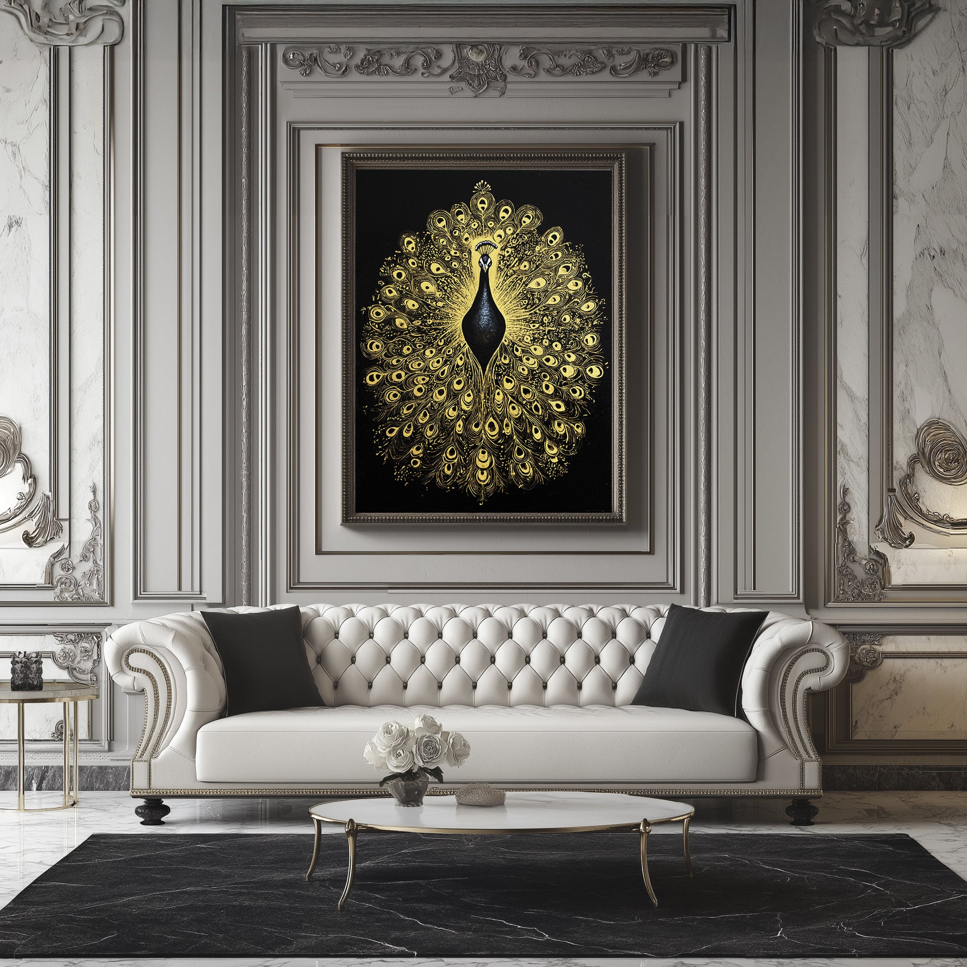 In Hindu culture, the peacock embodies wisdom, beauty, and divine protection. Its feathers, often seen as a metaphor for immortality and spiritual awakening, shimmer with life and movement. In this piece, each detail reflects the balance between strength and grace, silence and presence, making it a unique statement of artistry and symbolism.